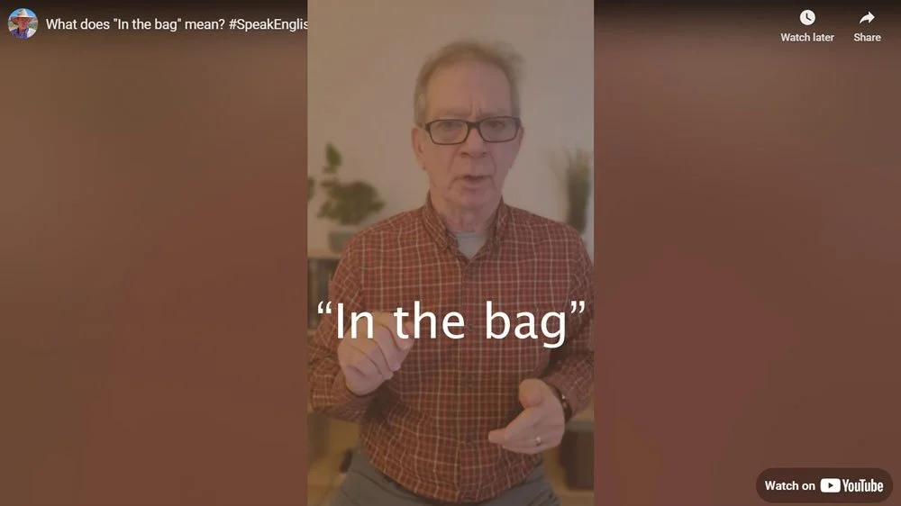The English idiom "in the bag" means that something is almost certainly going to happen or be successful. It's used when the outcome is practically guaranteed, like a task that is already completed or a competition that is almost won.